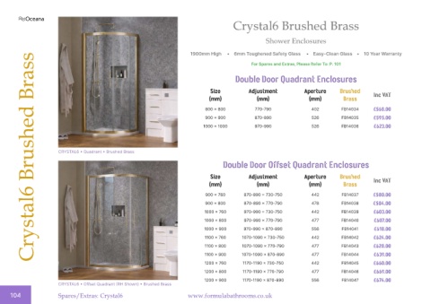 104 Spares/Extras: Crystal6 www.formulabathrooms.co.uk