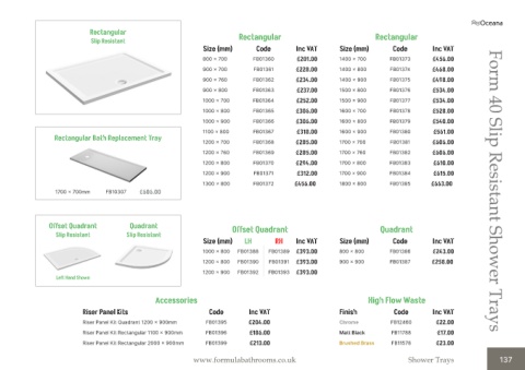 1700 x 700mm FB10307 £606.00 Form 40 Slip Resistant Shower Trays