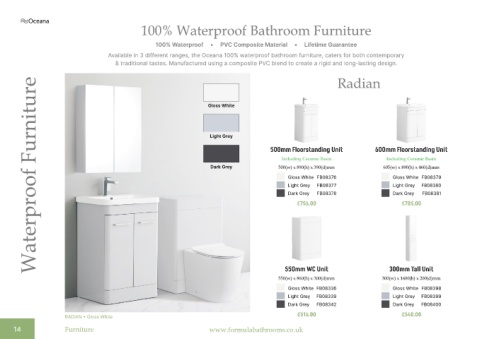 Available in 3 different ranges, the Oceana 100% waterproof bathroom furniture, caters for both contemporary