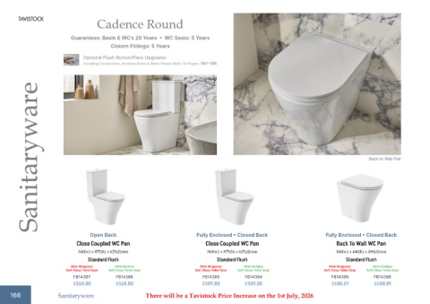 166 Sanitaryware There will be a Tavistock Price Increase on the 1st July, 2026