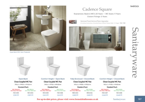 For up-to-date prices, please visit: www.formulabathrooms.co.uk Sanitaryware 167