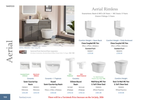 168 Sanitaryware There will be a Tavistock Price Increase on the 1st July, 2026