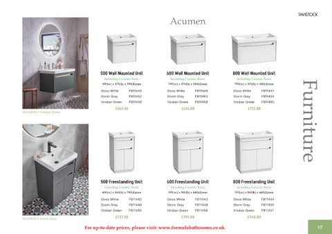 For up-to-date prices, please visit: www.formulabathrooms.co.uk 17