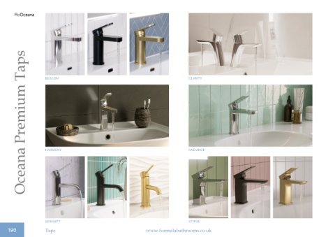 Oceana Premium Taps BEACON CLARITY HARMONY RADIANCE SERENITY STRIVE 190 Taps www.formulabathrooms.co.uk