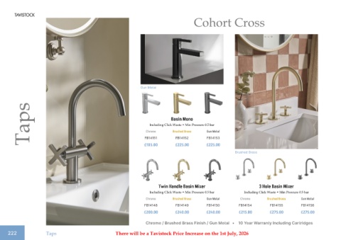 222 Taps There will be a Tavistock Price Increase on the 1st July, 2026