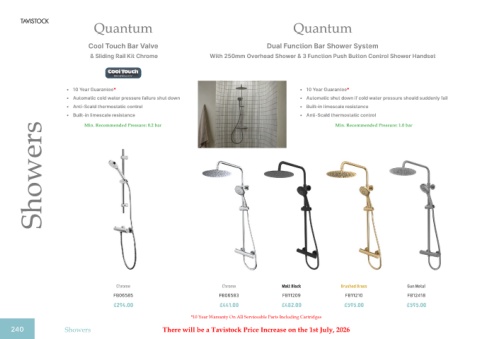 240 Showers There will be a Tavistock Price Increase on the 1st July, 2026