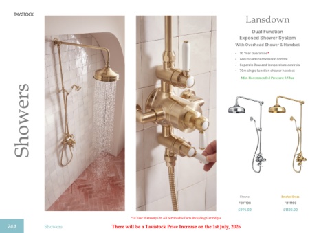 244 Showers There will be a Tavistock Price Increase on the 1st July, 2026
