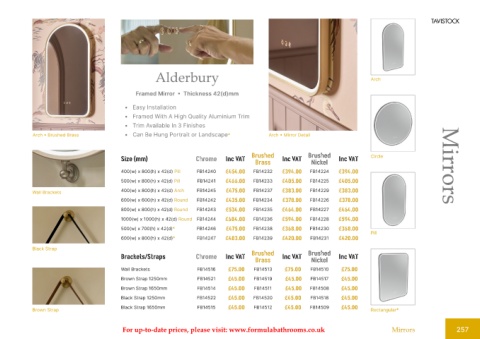 For up-to-date prices, please visit: www.formulabathrooms.co.uk Mirrors 257