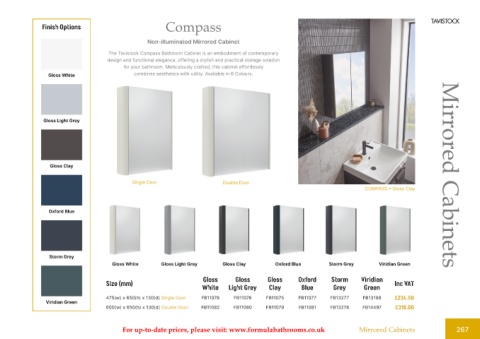 For up-to-date prices, please visit: www.formulabathrooms.co.uk Mirrored Cabinets 267