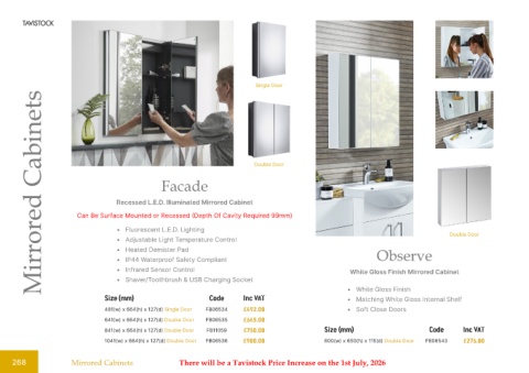 268 Mirrored Cabinets There will be a Tavistock Price Increase on the 1st July, 2026