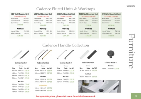 For up-to-date prices, please visit: www.formulabathrooms.co.uk 27