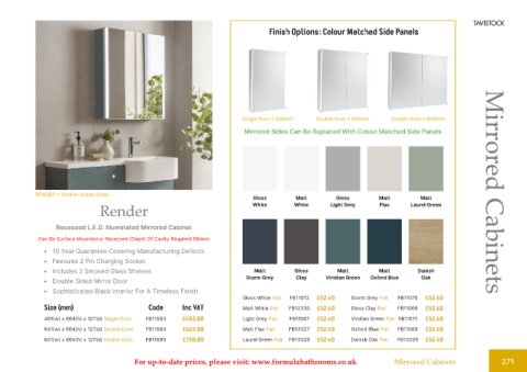 For up-to-date prices, please visit: www.formulabathrooms.co.uk Mirrored Cabinets 271
