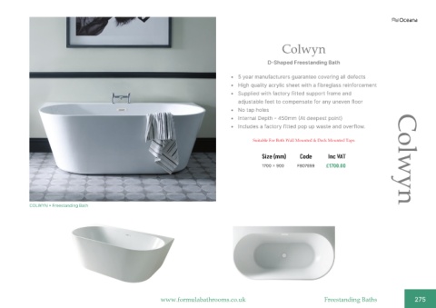 www.formulabathrooms.co.uk Freestanding Baths 275
