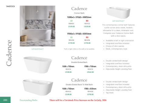 280 Freestanding Baths There will be a Tavistock Price Increase on the 1st July, 2026