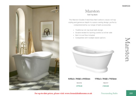 For up-to-date prices, please visit: www.formulabathrooms.co.uk Freestanding Baths 281