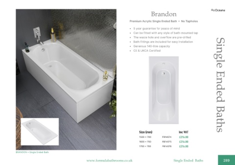www.formulabathrooms.co.uk Single Ended Baths 289