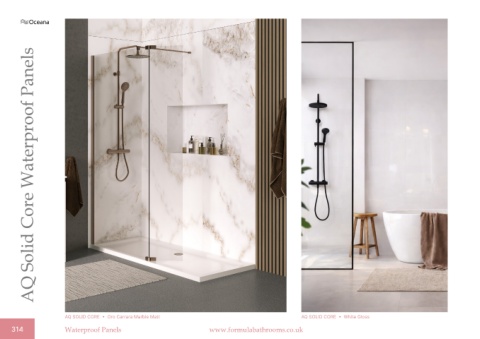 AQ Solid Core Waterproof Panels AQ SOLID CORE • Oro Carrara Marble Matt AQ SOLID CORE • White Gloss 314 Waterproof Panels www.formulabathrooms.co.uk