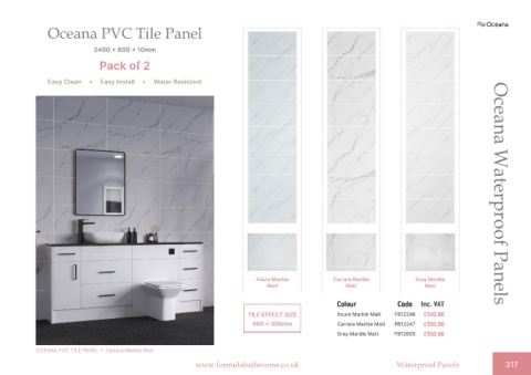 www.formulabathrooms.co.uk Waterproof Panels 317