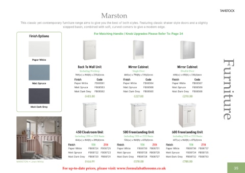 For up-to-date prices, please visit: www.formulabathrooms.co.uk 35