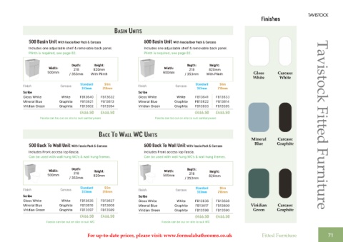For up-to-date prices, please visit: www.formulabathrooms.co.uk Fitted Furniture 71