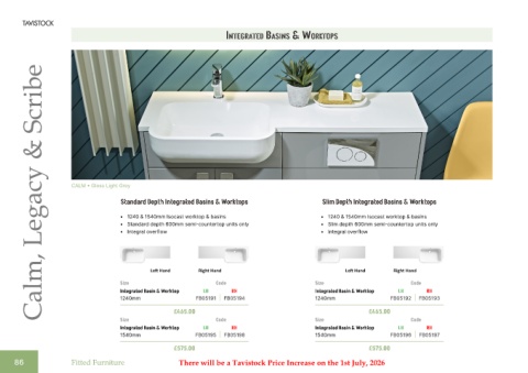 86 Fitted Furniture There will be a Tavistock Price Increase on the 1st July, 2026